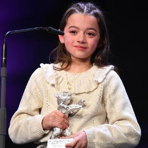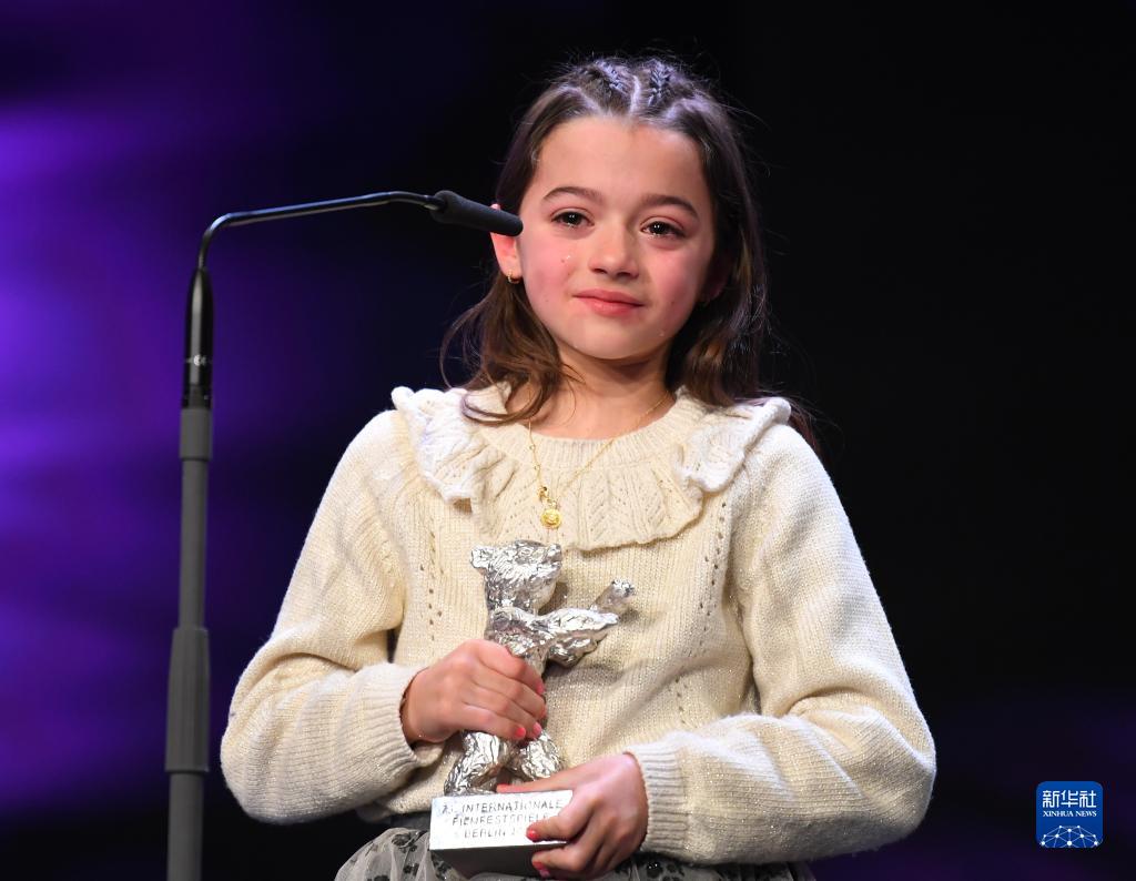 2月25日,在德國柏林,西班牙小演員索菲婭·奧特羅在頒獎儀式上領(lǐng)獎。索菲婭·奧特羅憑借影片《兩萬(wàn)種蜜蜂》獲得最佳主角銀熊獎。
