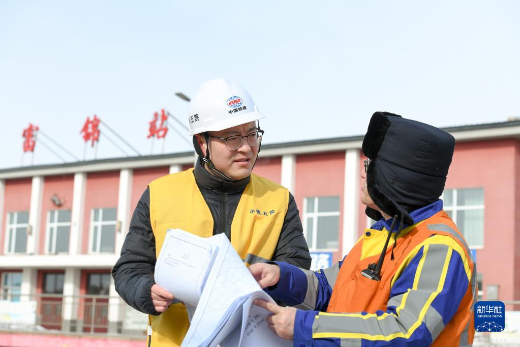 2月25日,黃騰(左)在富錦火車(chē)站進(jìn)行運量調查作業(yè)。
