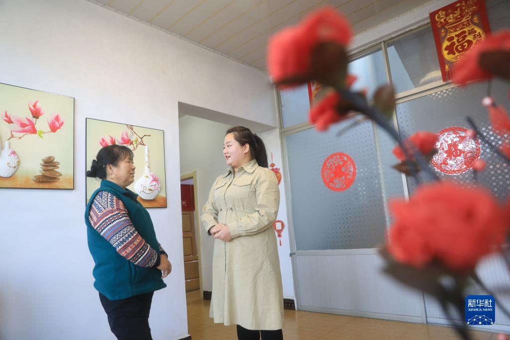 2月20日,在遼寧省朝陽(yáng)市朝陽(yáng)縣木頭城子鎮十家子村,王穎(右)在村民家中和村民嘮家常。