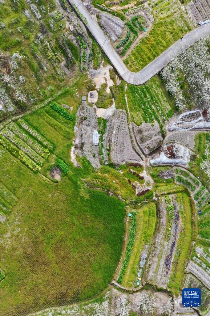 春耕時(shí)節,在福建省福州市鄉村山嶺間,一塊塊形狀各異、五彩斑斕的田地猶如大地上的拼圖,呈現別樣的春耕畫(huà)卷。