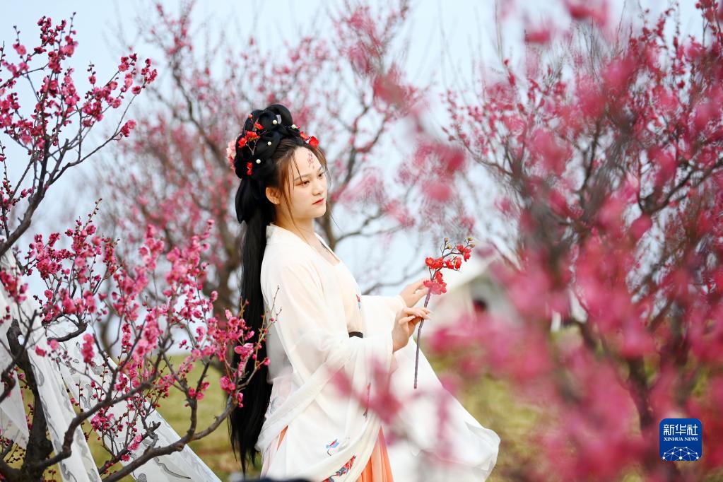 2月25日,古風(fēng)愛(ài)好者在長(cháng)安唐村梅園內留影。