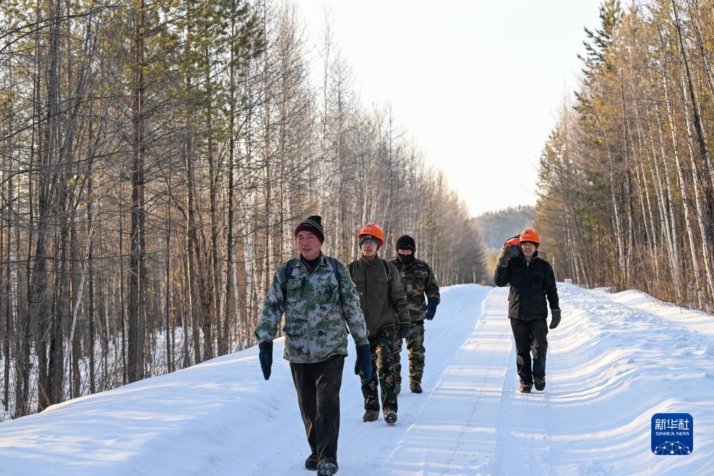 2月23日,內蒙古森工集團滿(mǎn)歸公司烏龍岱林場(chǎng)402工隊的職工上山作業(yè)。
