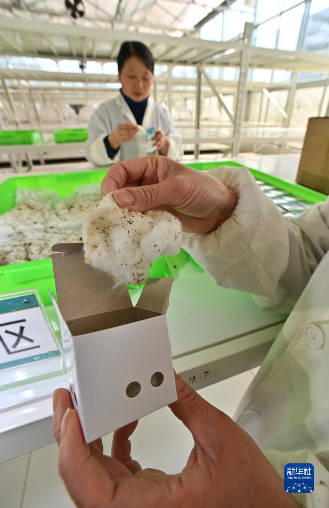 2月26日,貴州省鳳岡縣天敵昆蟲(chóng)繁育中心工作人員在包裝食蚜癭蚊成品。