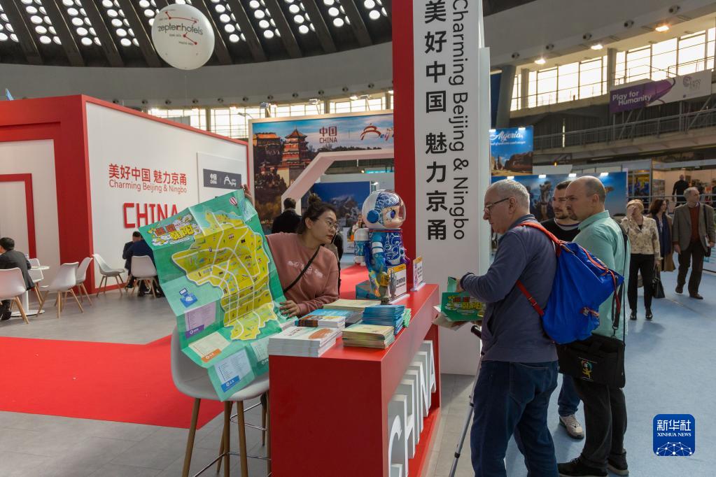 2月23日,人們在塞爾維亞首都貝爾格萊德參觀(guān)第44屆貝爾格萊德國際旅游博覽會(huì )中國展臺。