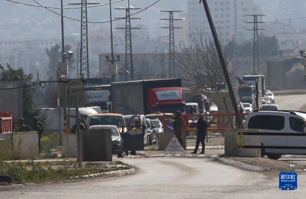 2月26日,以色列士兵在約旦河西岸城市納布盧斯以南胡瓦拉鎮一處檢查站警戒。