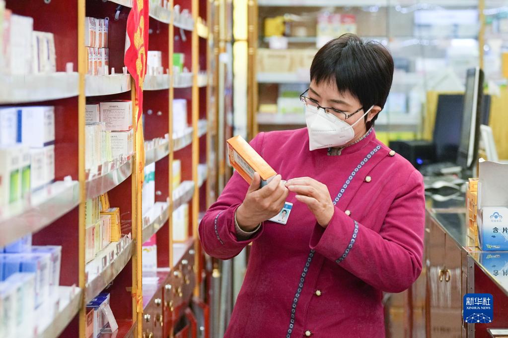 在白塔寺藥店,張海鷗查看藥店內的藥品(2月22日攝)。