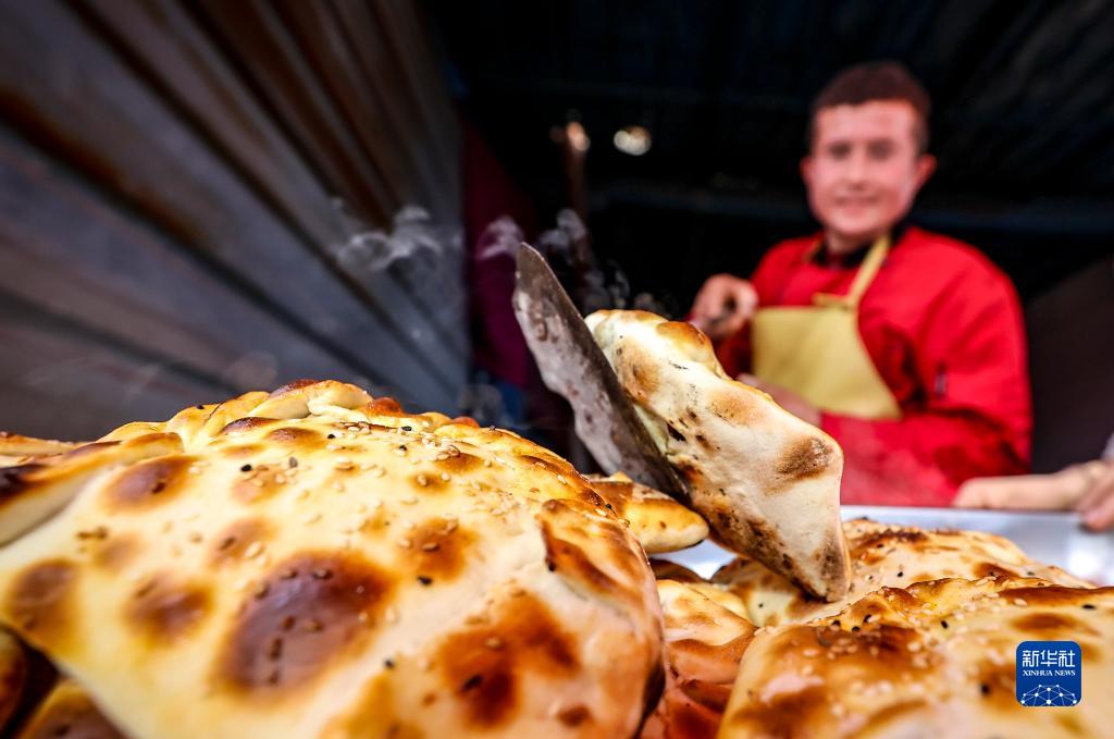 2月26日,在托克扎克鎮農貿市場(chǎng),名為“庫麥其”的當地傳統面食剛剛出爐。