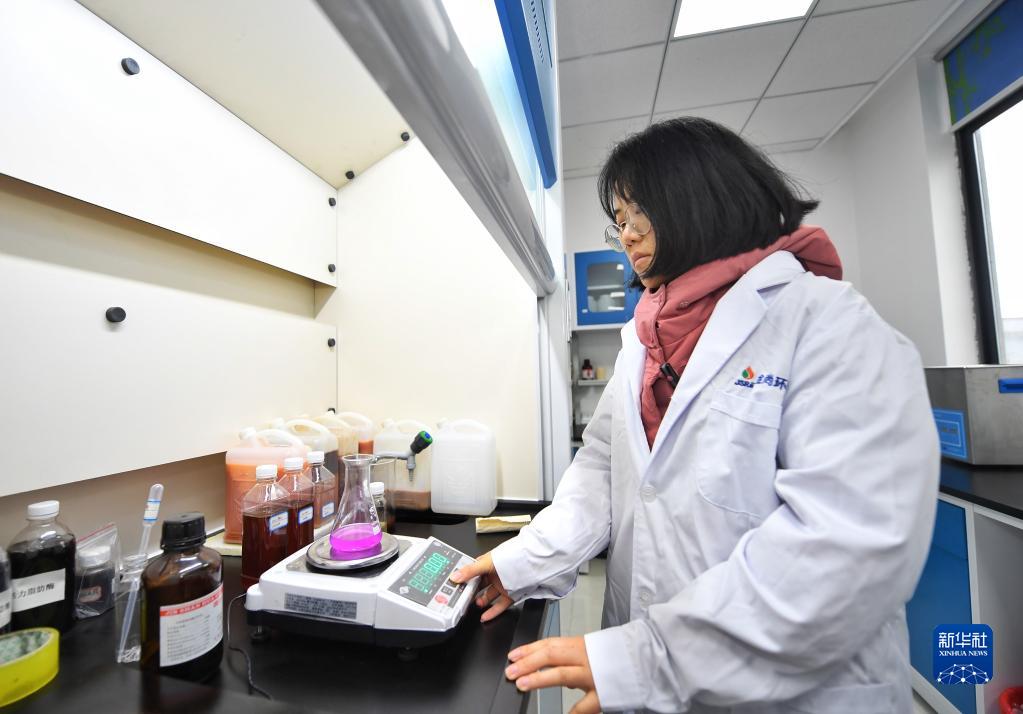 2月21日,四川一家環(huán)??萍加邢薰炯夹g(shù)人員在實(shí)驗室工作。