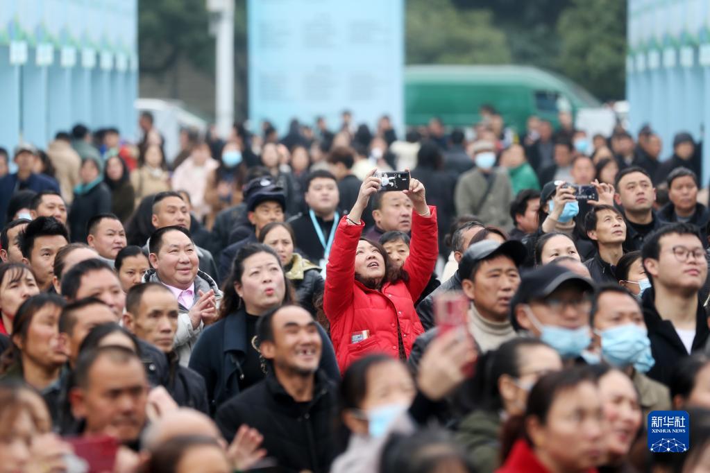 2月27日,人們在重慶市黔江區武陵文化廣場(chǎng)招聘活動(dòng)上查看拍攝求職信息。
