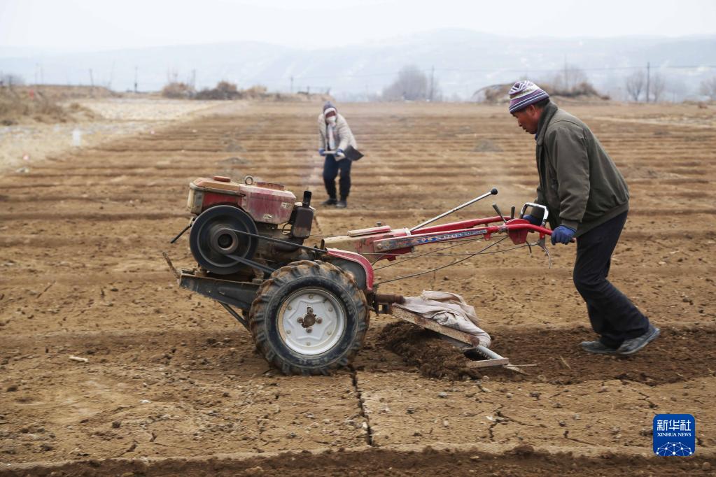 2月27日,甘肅省定西市安定區內官營(yíng)鎮農民在平整土地。