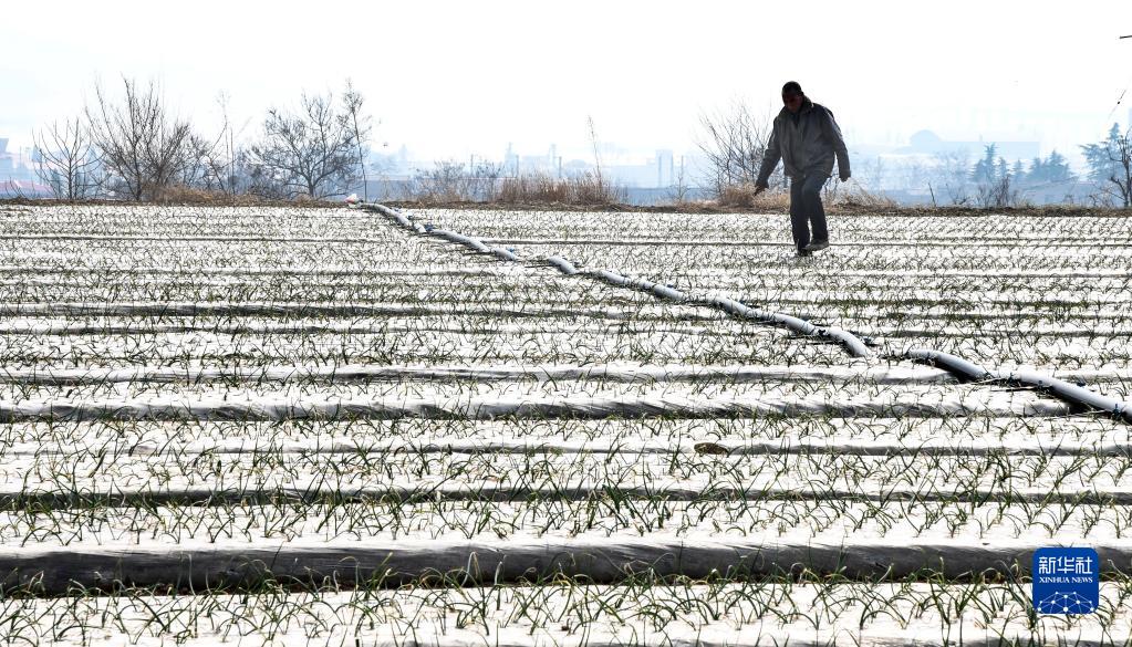 2月27日,河南省濟源市坡頭鎮佛澗村農民在洋蔥大田里忙碌。
