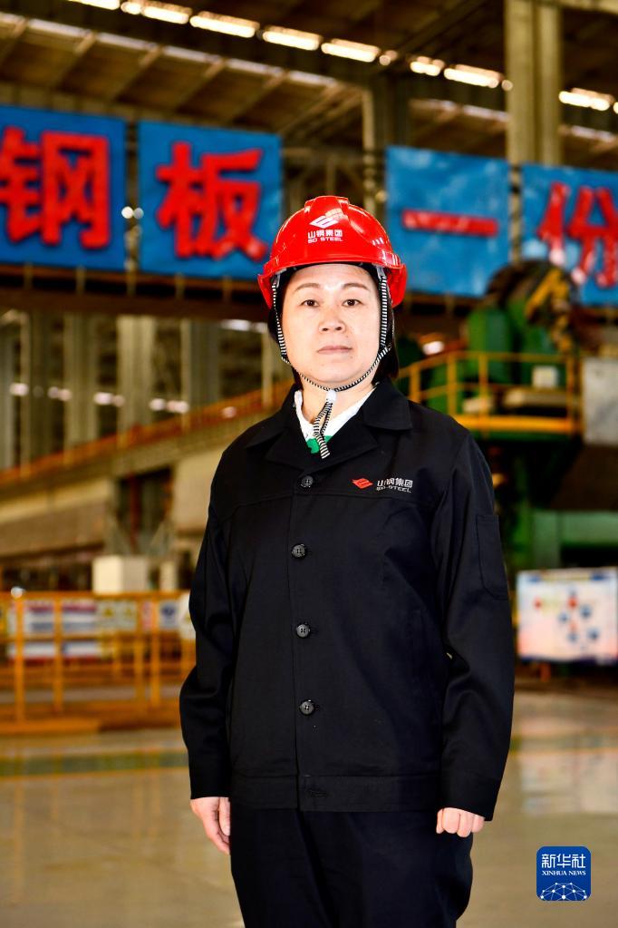 胡淑娥在山鋼集團日照公司生產(chǎn)車(chē)間留影(2月16日攝)。
