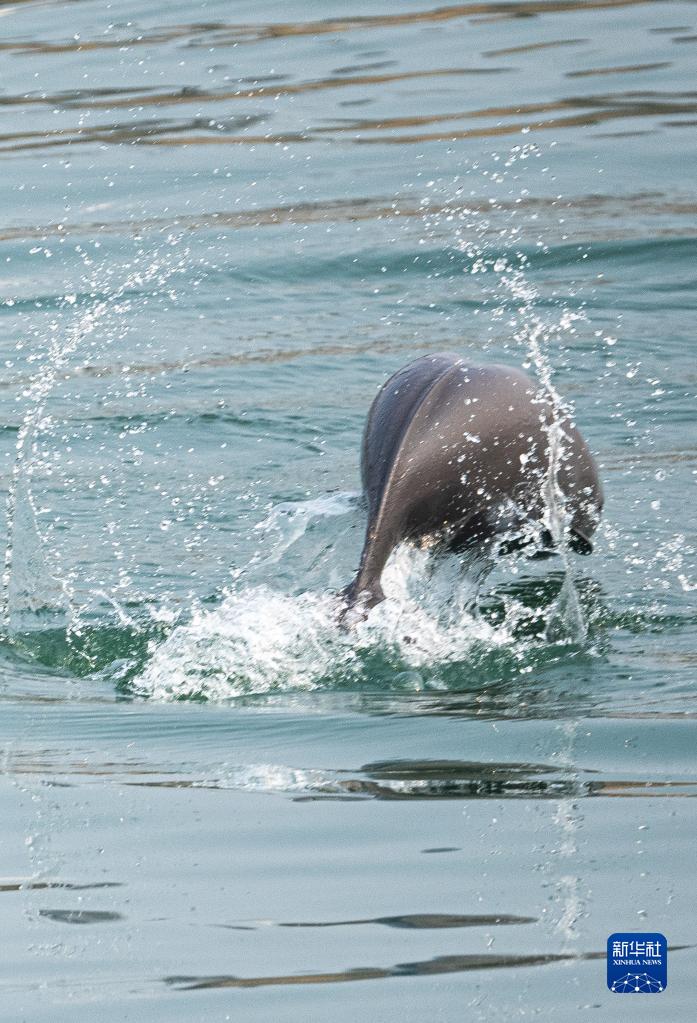 2月27日,在湖北省宜昌市江邊,長(cháng)江江豚在水中嬉戲。