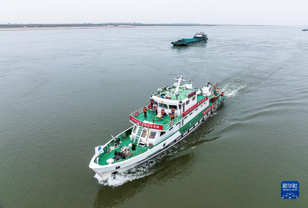 2022年9月23日,科考人員在湖北石首水域進(jìn)行觀(guān)測工作(無(wú)人機照片)。