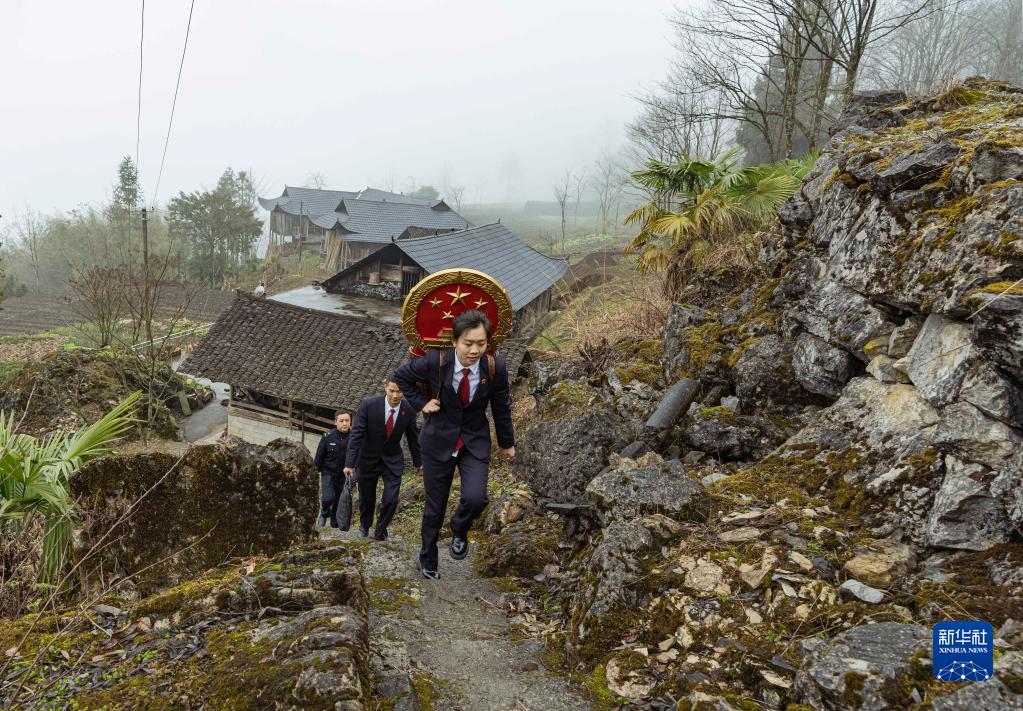 2月28日,法庭工作人員在前往鶴峰縣中營(yíng)鎮的路上。