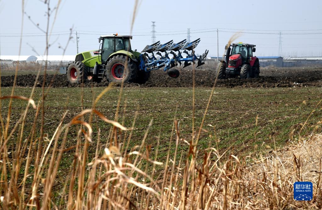 在萊西市夏格莊鎮曲家泊南村農田里,安裝了北斗精準定位輔助系統的拖拉機在進(jìn)行田間作業(yè)(2月28日攝)。