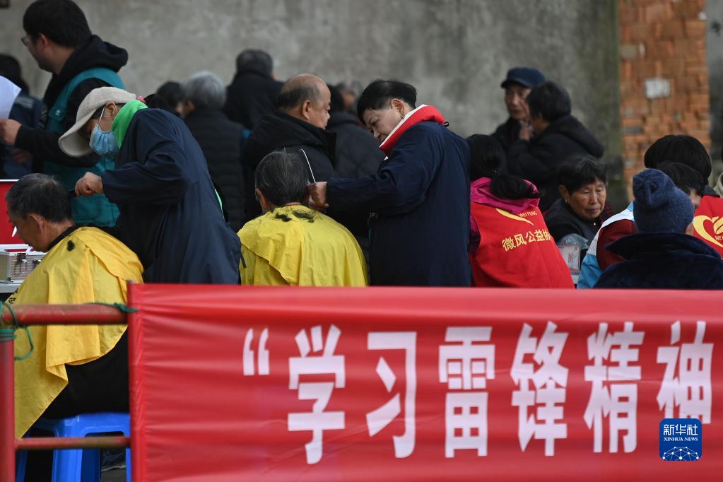 3月1日,志愿者在寧波市奉化區錦屏街道城西岙村免費為村民提供理發(fā)等民生服務(wù)。