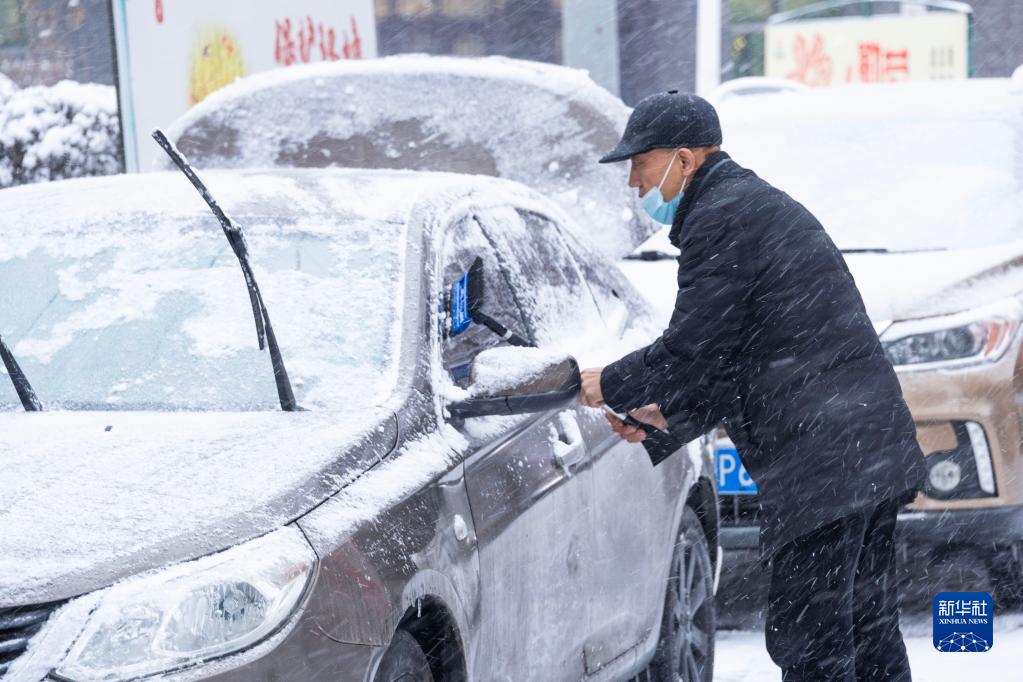 3月1日,在哈爾濱市香坊區,市民清掃車(chē)輛上的積雪。
