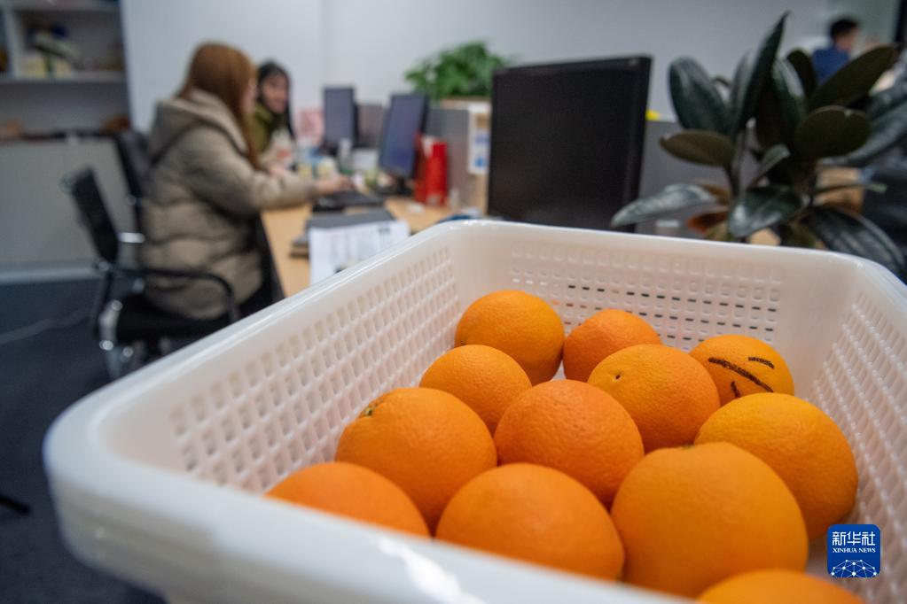2月28日,在位于重慶市奉節縣的大數據產(chǎn)業(yè)園內,員工在一家文化傳播公司里工作。該公司通過(guò)線(xiàn)上線(xiàn)下方式推介當地農產(chǎn)品。