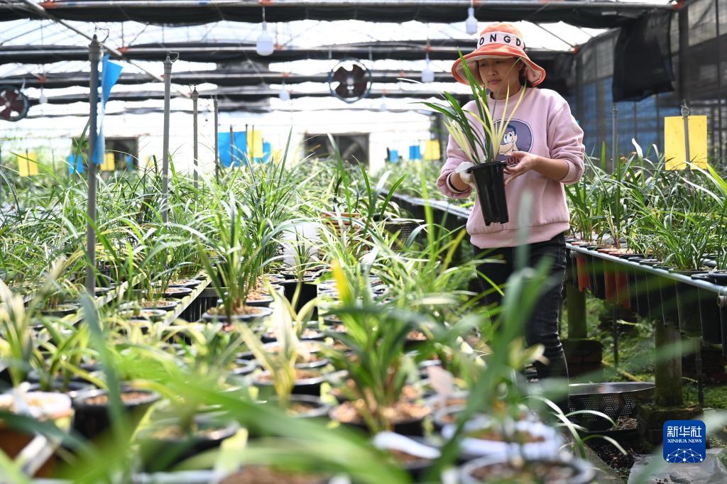 3月1日,南靖縣的“青心蘭園”女工楊紅英進(jìn)行蘭花翻盆整理。
