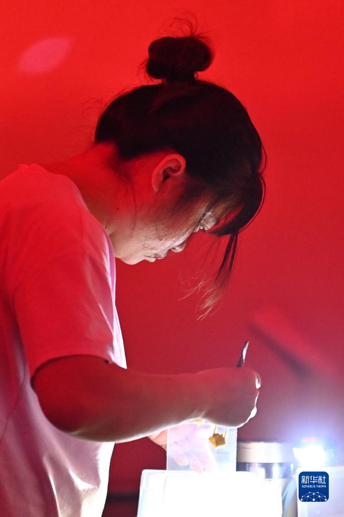 工作人員在中農熊蜂繁育基地繁育車(chē)間內夾取蜂糧(3月1日攝)。