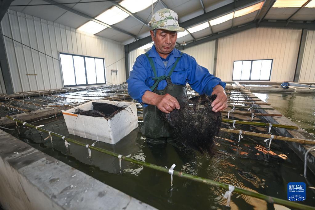 3月2日,在位于湖州市吳興區東林鎮保健村的湖旺水產(chǎn)基地孵化池內,工作人員將覆蓋著(zhù)魚(yú)卵的棕片小心地放到水池里進(jìn)行孵化。
