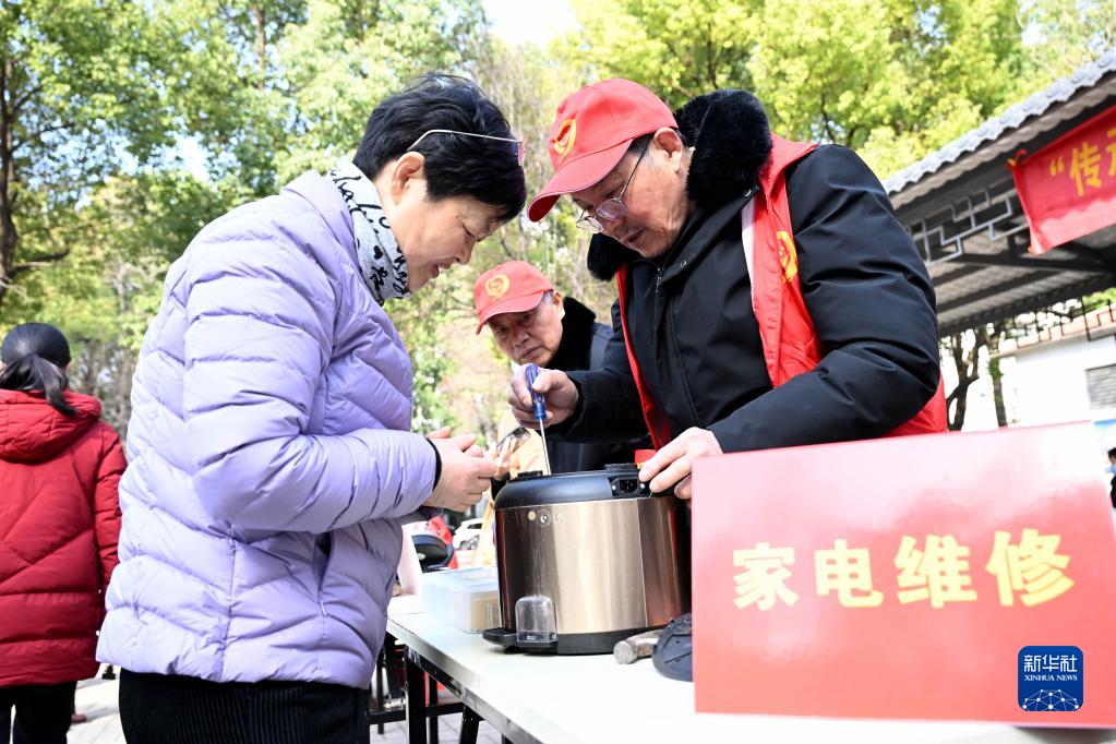 3月3日,在合肥市蜀山區琥珀街道琥珀潭社區,志愿者為居民維修家電。