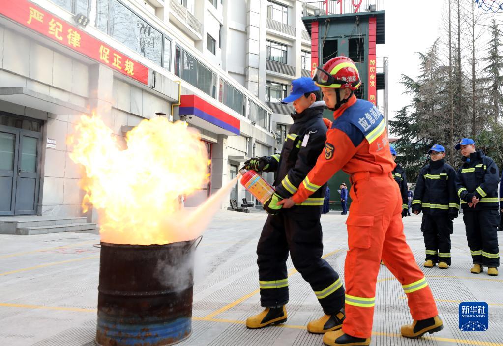 3月3日,在長(cháng)寧消防救援支隊訓練場(chǎng),消防員在輔助“小小消防志愿者”服務(wù)隊隊員進(jìn)行滅火演練。