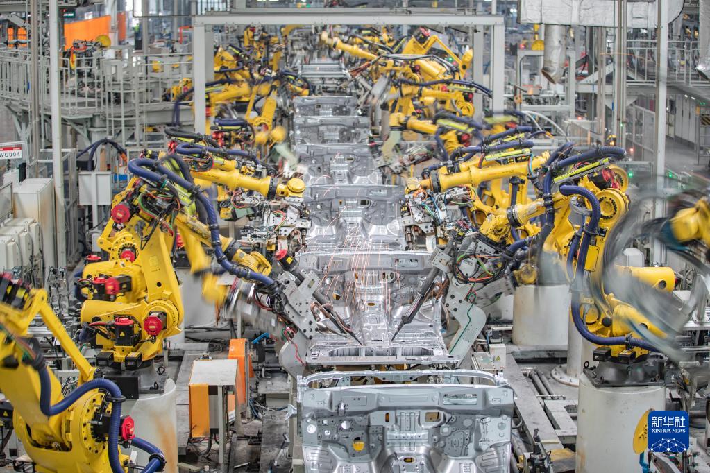 3月1日,在長(cháng)城汽車(chē)重慶永川生產(chǎn)基地焊裝車(chē)間,智能化焊接機器人在進(jìn)行焊接作業(yè)。