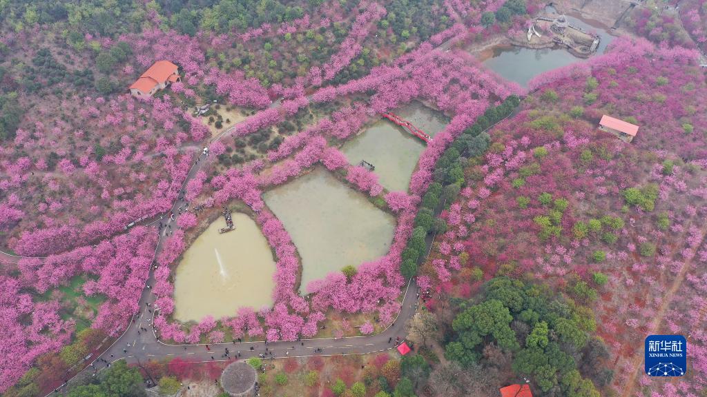 3月4日拍攝的常寧市羅橋鎮櫻花園景色(無(wú)人機照片)。