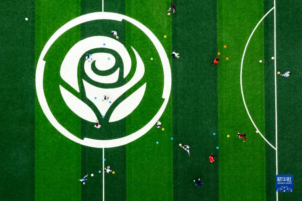圖為瓦吾小學(xué)的女足隊員們在“玫瑰夢(mèng)想球場(chǎng)”上訓練(無(wú)人機照片,2023年3月3日攝)。