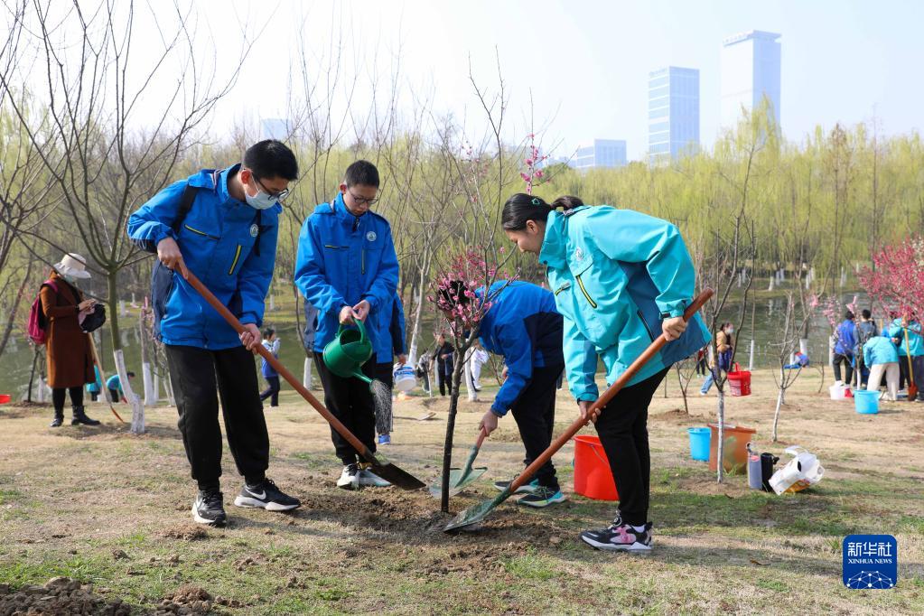當日,合肥市包河區濱湖世紀社區聯(lián)合轄區消防工作人員在雨水公園開(kāi)展“手牽手護綠一起行”義務(wù)植樹(shù)活動(dòng),綠化家園。
