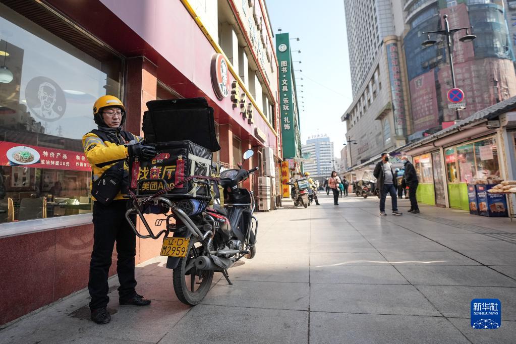 3月3日,“百姓雷鋒”盧旭東在取餐食,準備給顧客送去。