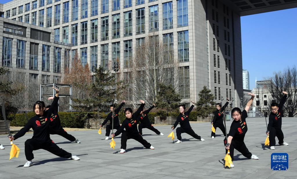 3月2日,在北京航空航天大學(xué),武術(shù)隊的隊員在校園內進(jìn)行刀術(shù)訓練。