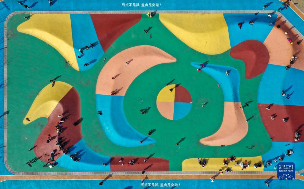 3月4日,市民在江蘇省昆山市周市鎮城市運動(dòng)廣場(chǎng)上運動(dòng)(無(wú)人機照片)。