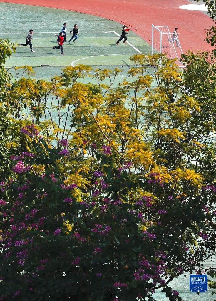 2月28日,廣西南寧市濱湖路小學(xué)的學(xué)生們在操場(chǎng)上奔跑。