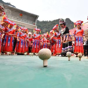 當日,廣西大化瑤族自治縣大化鎮仁良村舉辦“三八”國際婦女節陀螺比賽,壯、瑤、漢等各族婦女歡聚一堂,通過(guò)打陀螺、跳竹竿舞、品長(cháng)桌宴等豐富多彩的民俗體育和文化活動(dòng),迎接節日。