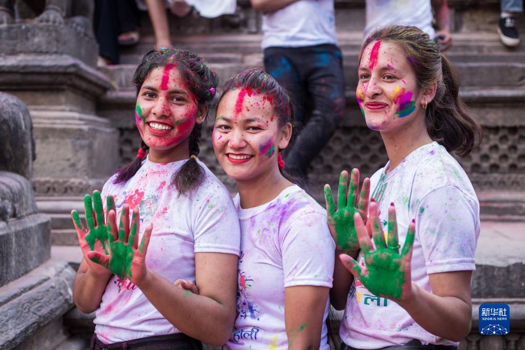 3月6日,人們在尼泊爾勒利德布爾參加灑紅節慶?;顒?dòng)。
