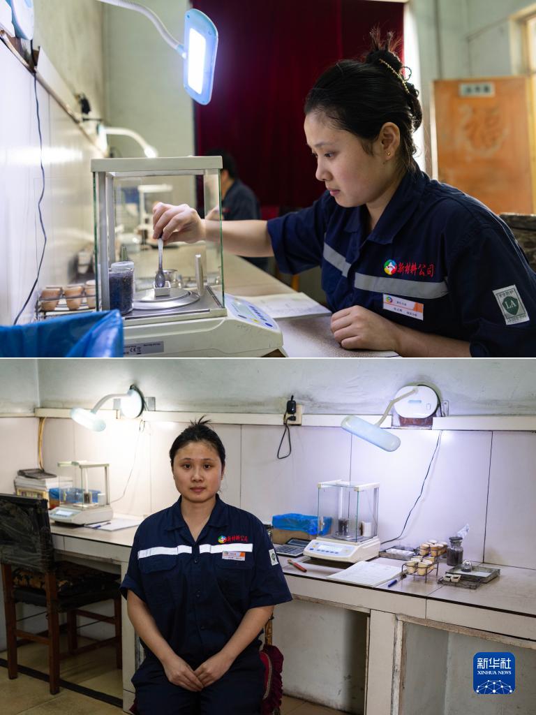 拼版照片:上圖為在黑龍江省七臺河市,寶泰隆新材料股份有限公司焦化廠(chǎng)工人佟志輝在進(jìn)行煤質(zhì)分析;下圖為佟志輝在崗位上留影(3月7日攝)。