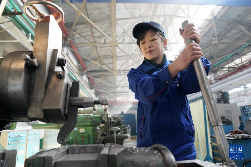 3月6日,哈電集團哈爾濱電機廠(chǎng)有限責任公司刨工張淑衛在作業(yè)中。