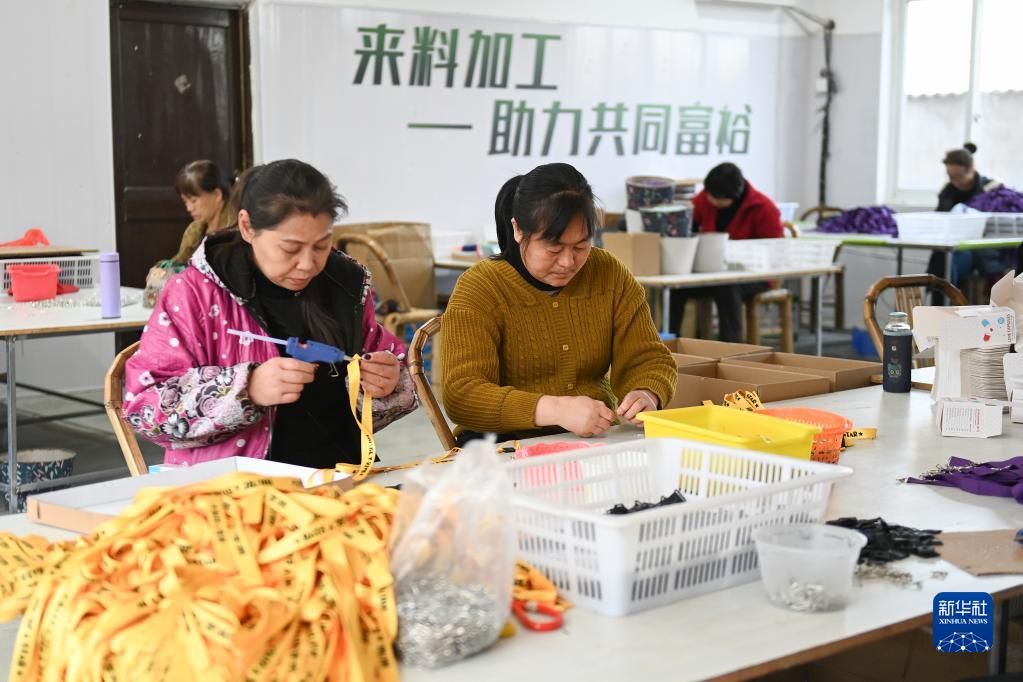 3月8日,村民在奉化區西塢街道山下地村來(lái)料加工工坊從事來(lái)料加工。