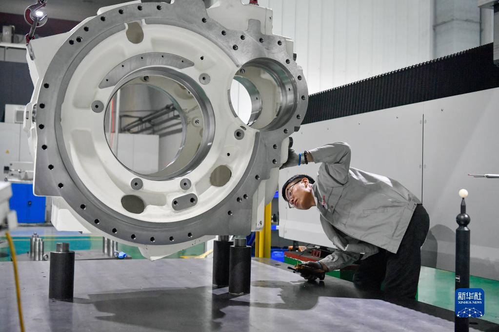 在天津市一家科技公司,工人在對風(fēng)電機組減速機箱體進(jìn)行檢測(3月8日攝)。