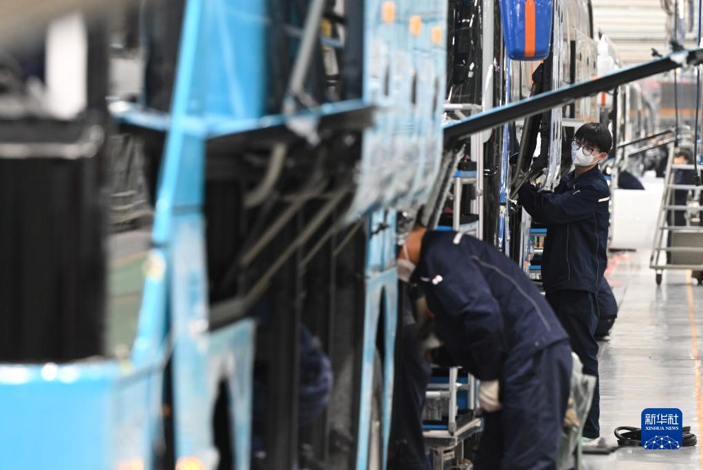 近日,在位于河南省鄭州市的宇通新能源廠(chǎng)區高端及海外承裝車(chē)間里,工作人員在流水線(xiàn)上忙碌地趕訂單生產(chǎn)。今年以來(lái),宇通客車(chē)海外出口持續走熱,相繼獲得多個(gè)海外訂單。據介紹,截至目前,宇通客車(chē)已遠銷(xiāo)30多個(gè)國家和地區。