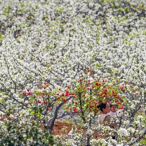 近日,廣西柳州市融安縣潭頭鄉梨花盛開(kāi),吸引游人前來(lái)游玩拍照。