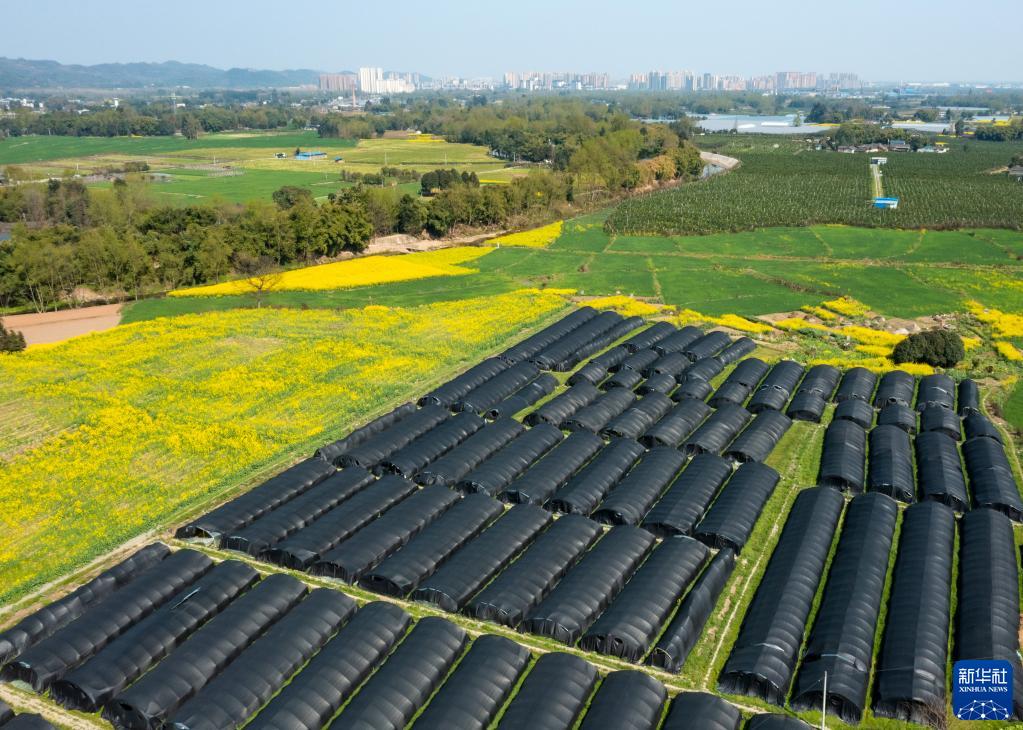 這是在四川省成都市大邑縣新場(chǎng)古鎮燈籠社區拍攝的羊肚菌種植大棚(3月8日攝,無(wú)人機照片)。