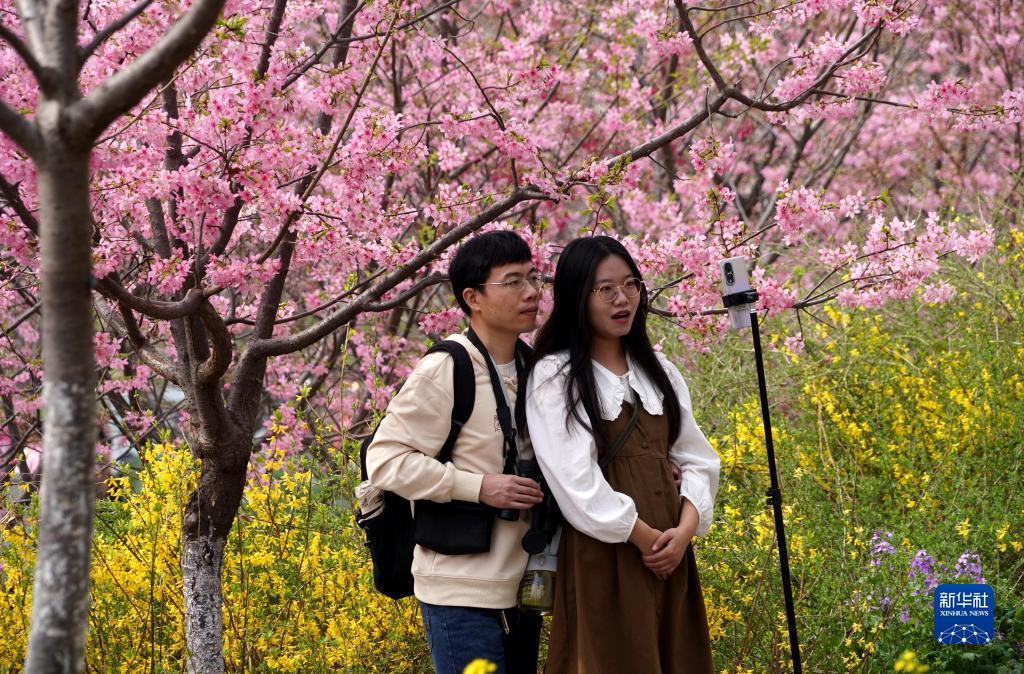 當日,2023年河南·滎陽(yáng)第八屆黃河櫻花節在滎陽(yáng)市古柏渡豐樂(lè )櫻花園開(kāi)幕,園內綻放的早櫻吸引市民前來(lái)賞花游玩。古柏渡豐樂(lè )櫻花園有80余種櫻花,約12萬(wàn)余株,早、中、晚櫻次第開(kāi)放,賞花期從3月持續至4月中旬。