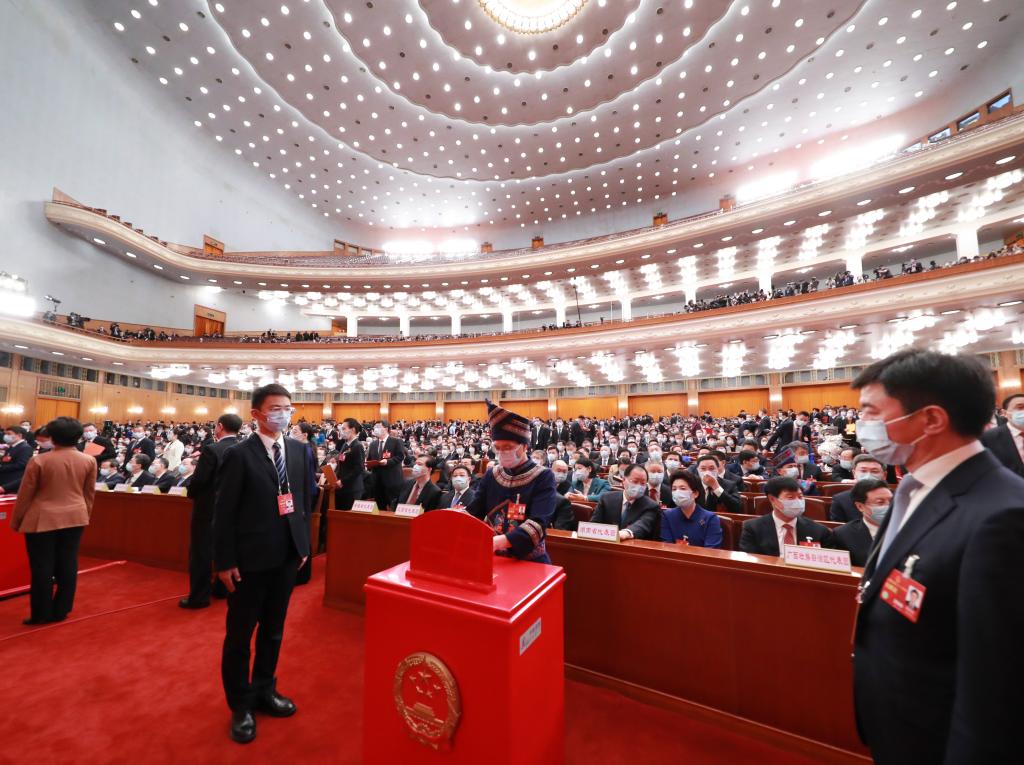 3月11日,十四屆全國人大一次會(huì )議在北京人民大會(huì )堂舉行第四次全體會(huì )議。這是代表在投票。