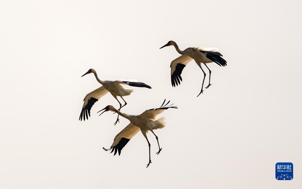 3月10日,白鶴在位于南昌高新區的五星白鶴保護小區上空飛翔。