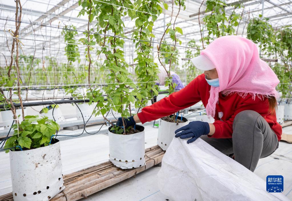 農民在寧夏賀蘭縣洪廣鎮欣榮村紅樹(shù)莓種植基地溫室內勞作(3月10日攝)。