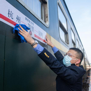 3月10日夜,2023年長(cháng)三角地區開(kāi)行的首趟跨省鐵路旅游專(zhuān)列Y71次列車(chē)從杭州火車(chē)站發(fā)車(chē),載著(zhù)420余名旅客駛向云貴高原。